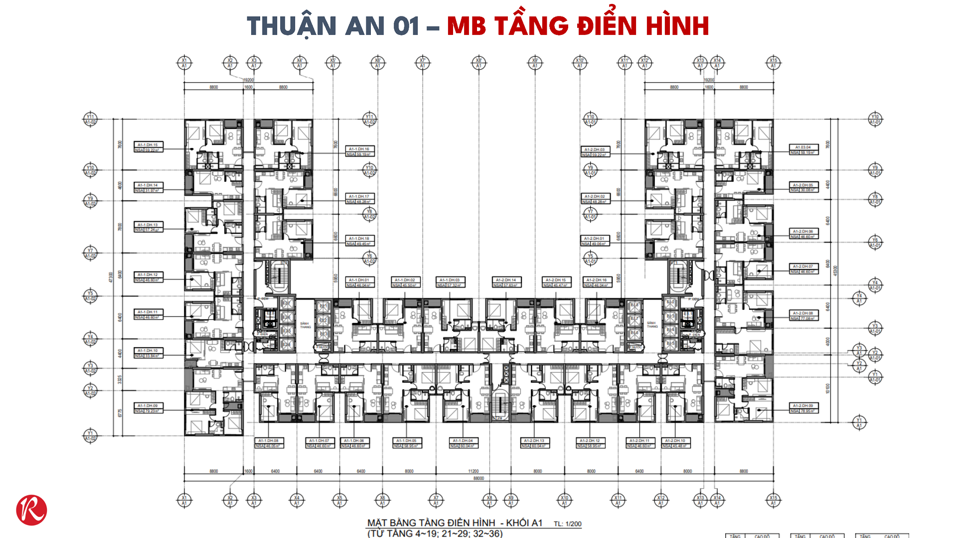 Mặt bằng căn hộ Monrei tầng 4 đến 36